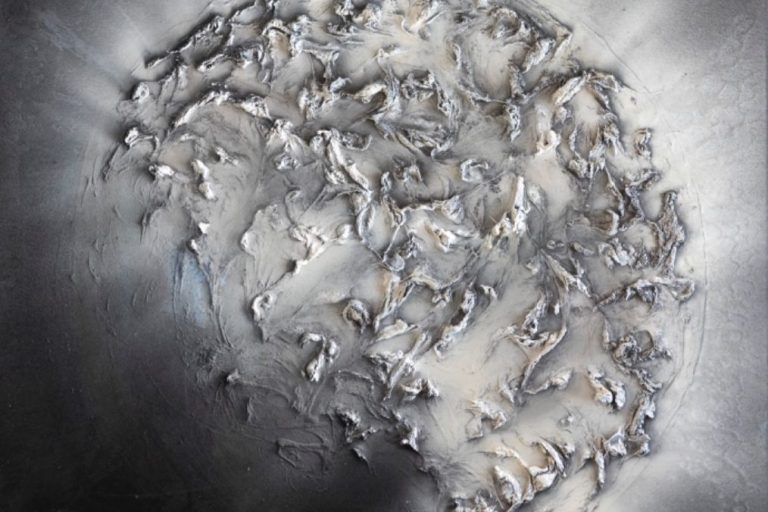 This art piece is made of corn flower and pure silver paint. Is a reflexion of a reborned world. The finish gives the impression a the world is covered in water.